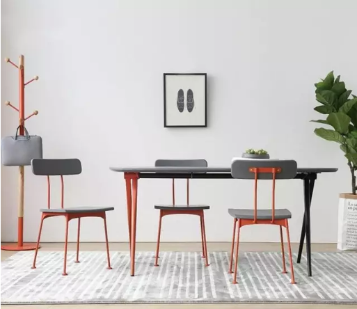 这款用铁艺搭配实木的餐桌椅,桌面和凳面都采用木质坚韧,纹理也非常美观的水曲柳,经加工后用较好的胶水固定,将表面染成神秘的灰色,加上精湛的工艺,保留岁月的纹路,使其细腻的纹理完美呈现,在再饰以优质的金属框架,桌椅牢固耐用,简约美观,且支架边缘精心打磨,棱角分明,手感光滑舒适,将其置于餐厅中带来一股浓浓的北欧复古工业风。