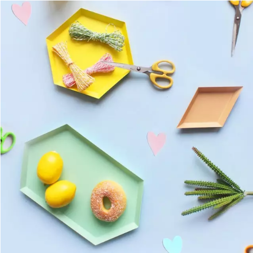 多色多造型铁艺分隔盘,简单的几何外形,可任意组合,多变的造型,鲜亮、百搭的颜值,缤纷的色彩设计,使桌面多了一抹绚丽的风景,用来放放水果零食什么的,幸福感倍增,多尺寸的设计也节省了不少空间,既可用做餐盘,还可用作收纳,是一款兼具颜值和实力的单品。