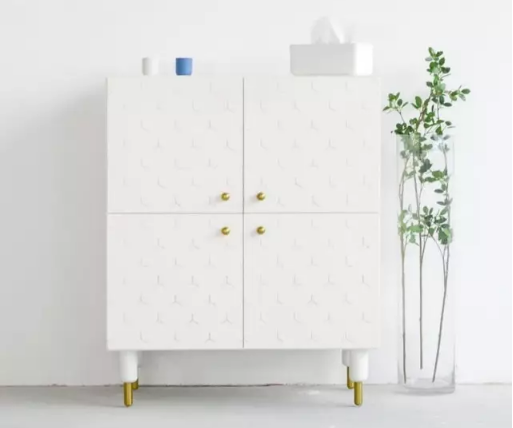 纯白色柜身,采用哑光颜色质感与金色金属现代感相结合,柜体表面的人型花纹,简约而附有细节质感;娇小的体形,置于餐厅方便收纳,又节省空间,作为餐边柜,收纳餐具与美食,也可作为入户玄关柜等增添生活情趣,更是可作为卧室边柜收纳,兼具美观和实用。