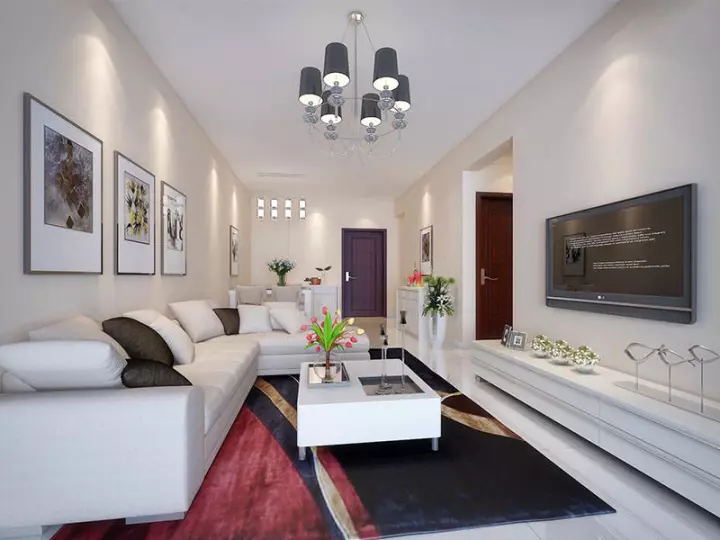1、客厅灯饰的搭配建议选用设计感较强、外观出挑的吊灯,尤其能修饰客厅空间的现代简约气质,款式尽量选择简单不繁琐的。灯光颜色要与墙体颜色相衬,如墙体(壁纸)为米色或其他素色,建议灯带颜色选用昏黄暖色,反之,如墙体为纯白色,则灯带灯光色宜少少偏冷偏白。