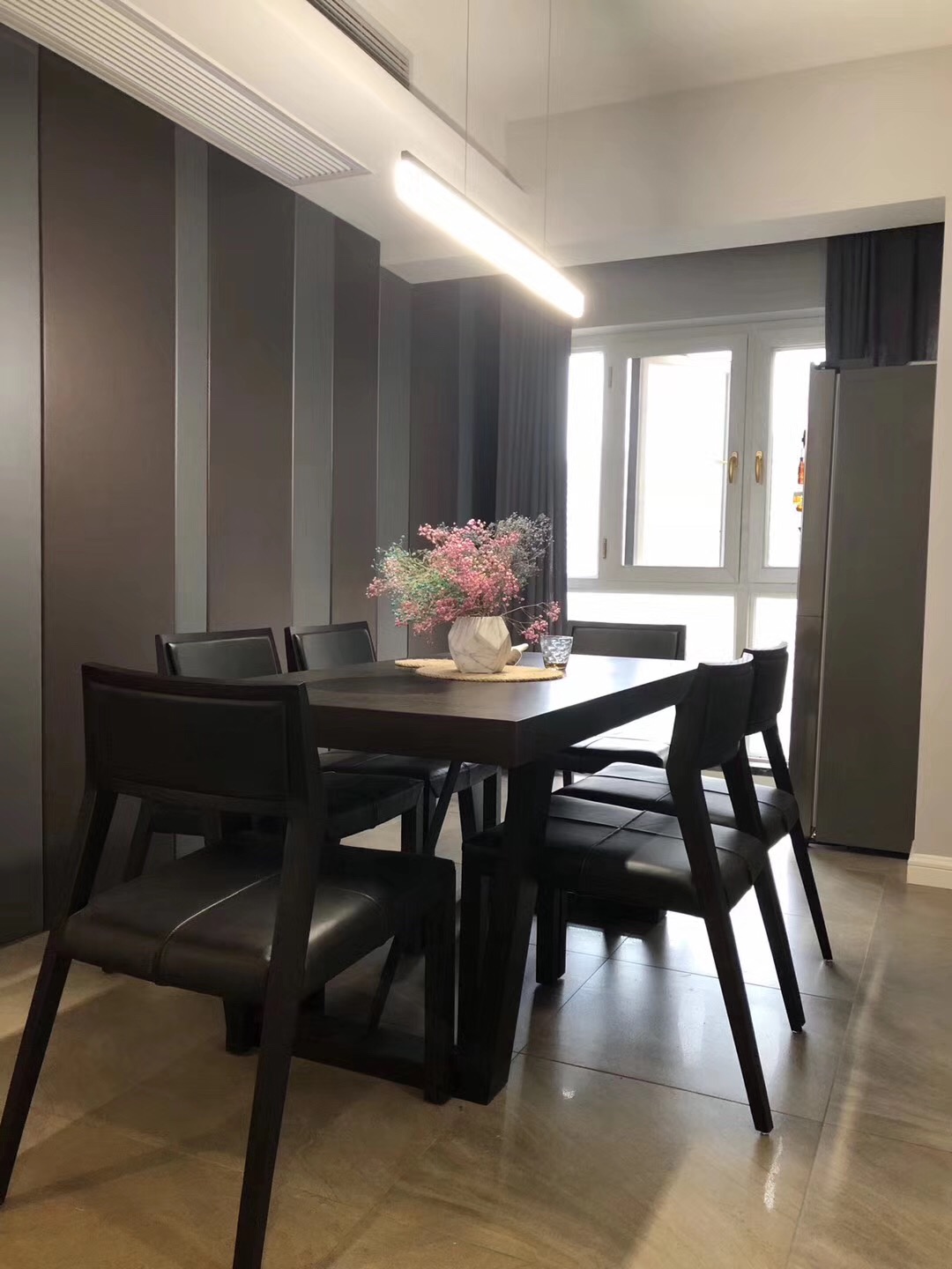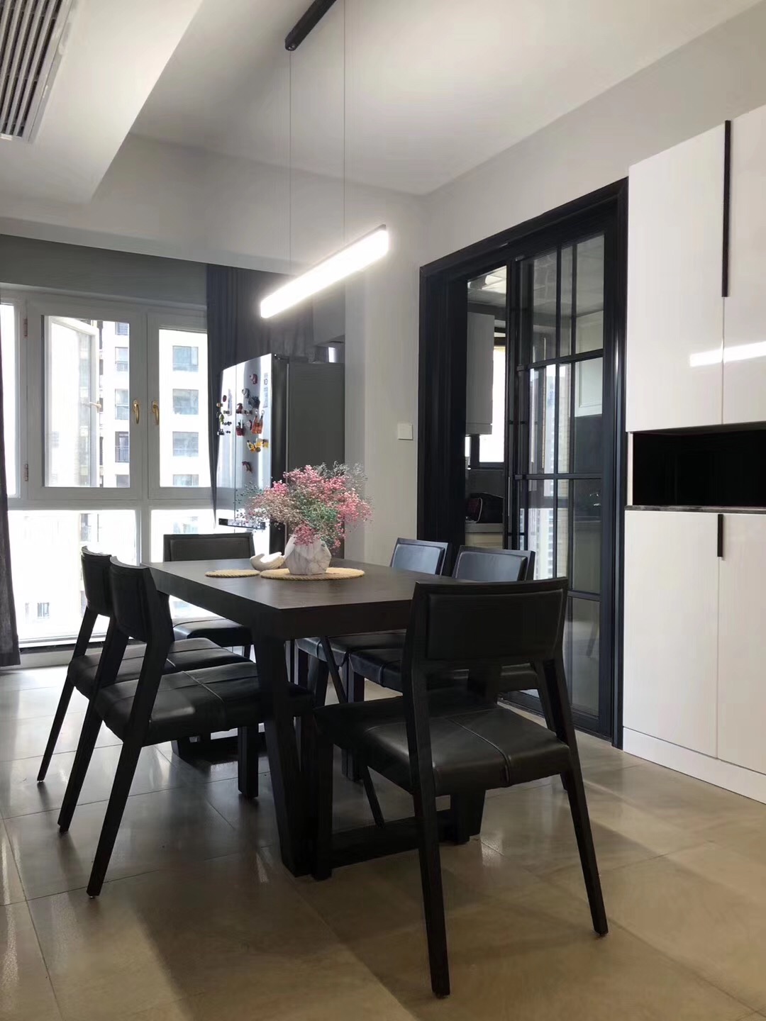 2、落地窗很好采光,让餐厅明亮洁净,黑白配色时尚简练,是大多数人比较喜欢的风格。