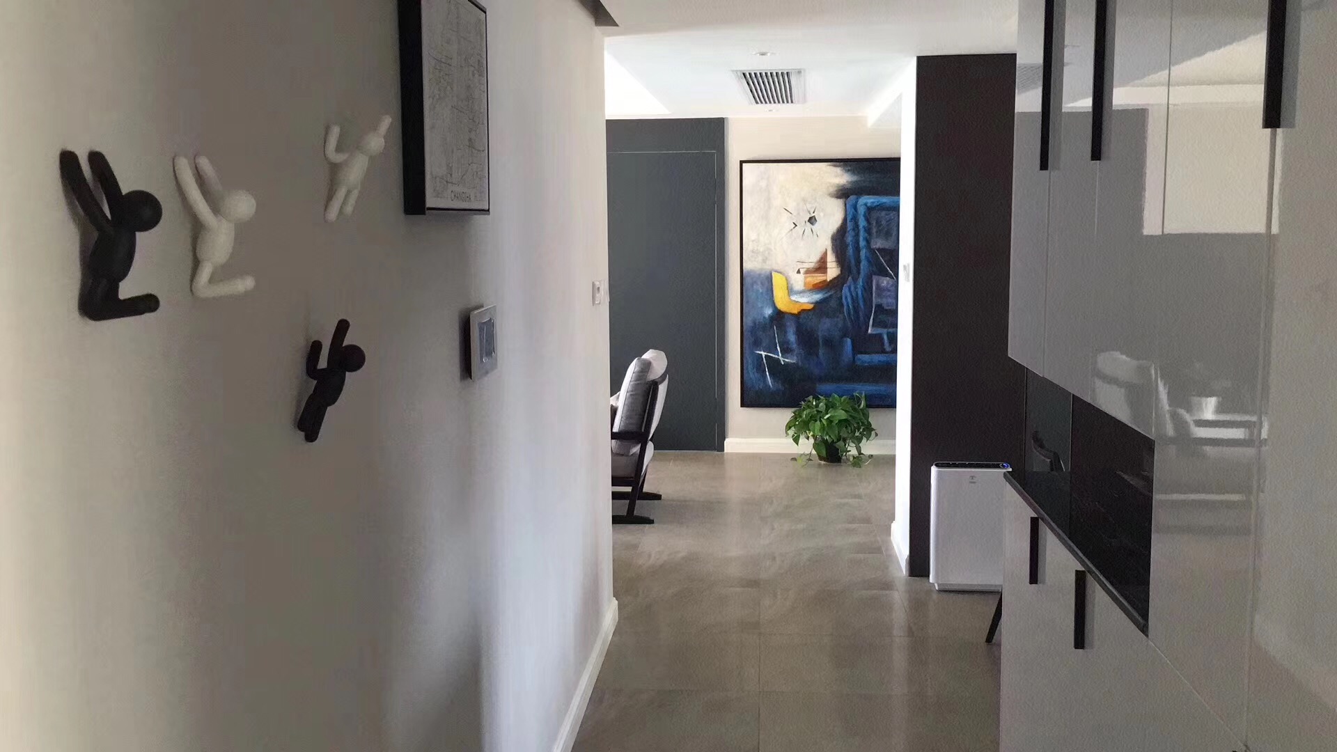 1、玄关入口做了整排的柜子,不仅能够放鞋子,还能收纳很多其他的东西。