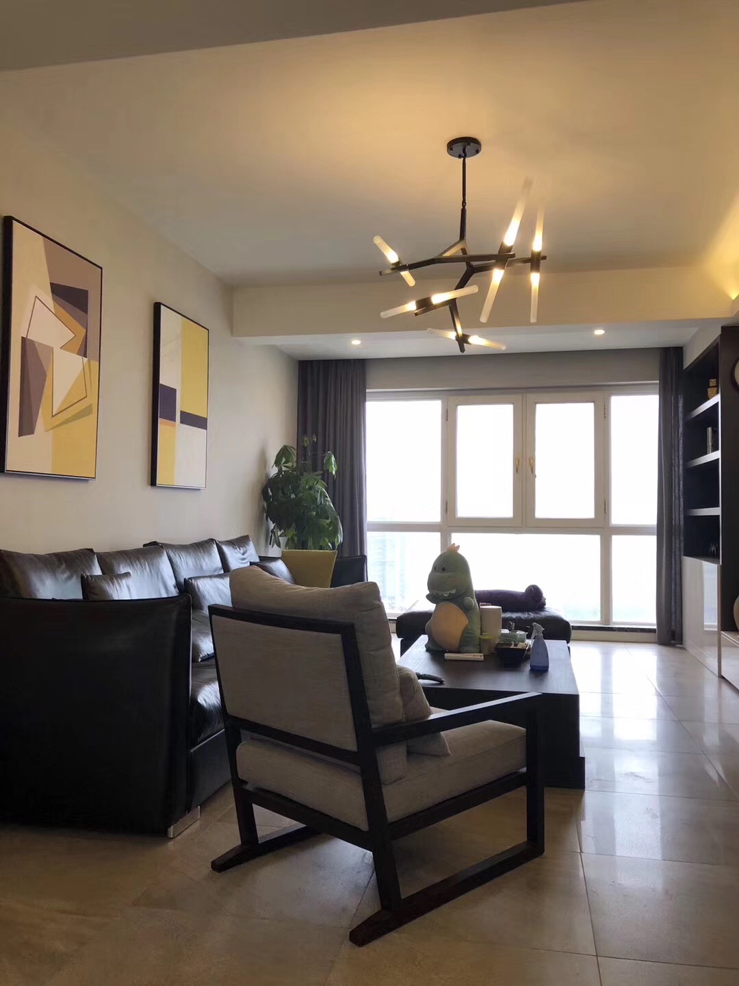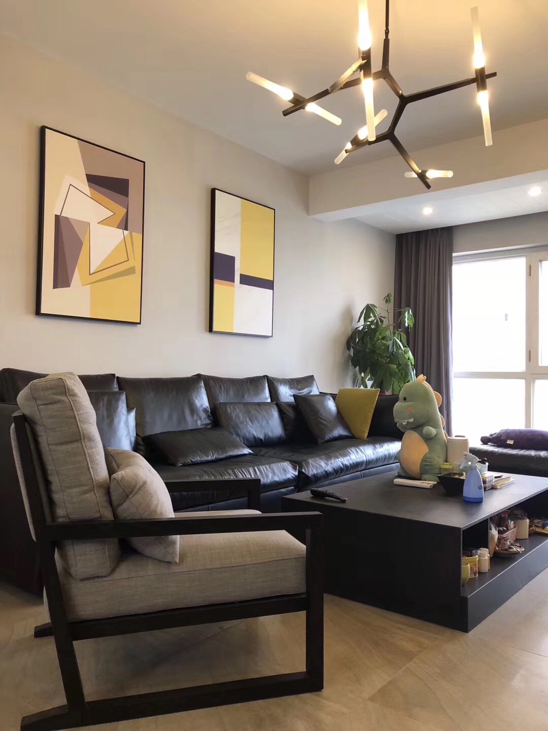 3、皮质沙发搭配木质茶几,黑白灰的经典组合
