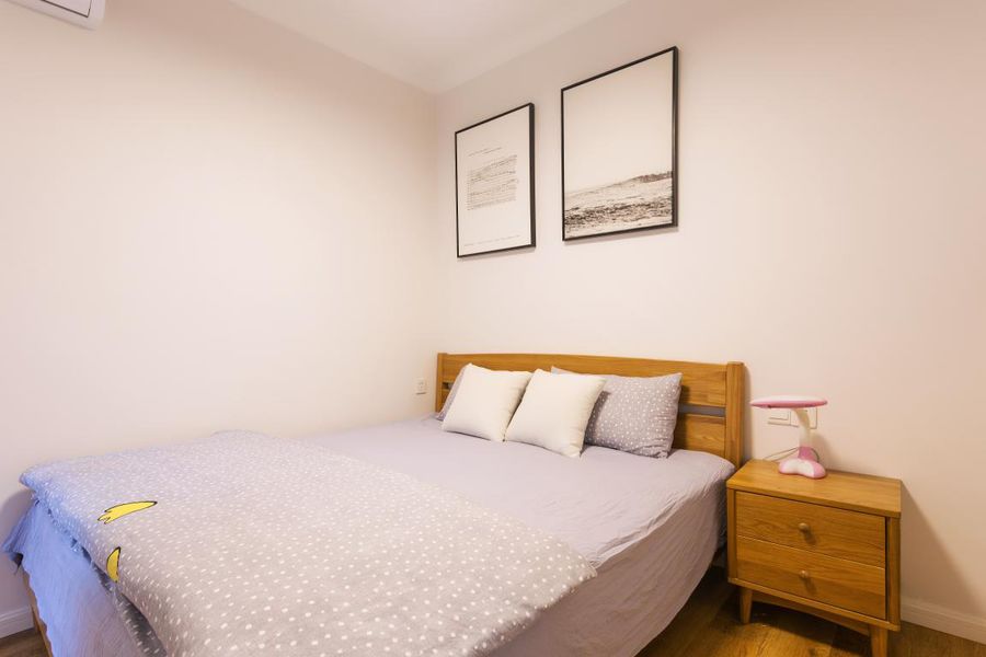 客卧的设计更加简洁,但却很实用,方便女主人打扫整理。墙上的装饰画增添了艺术感,让“家”的味道更浓。