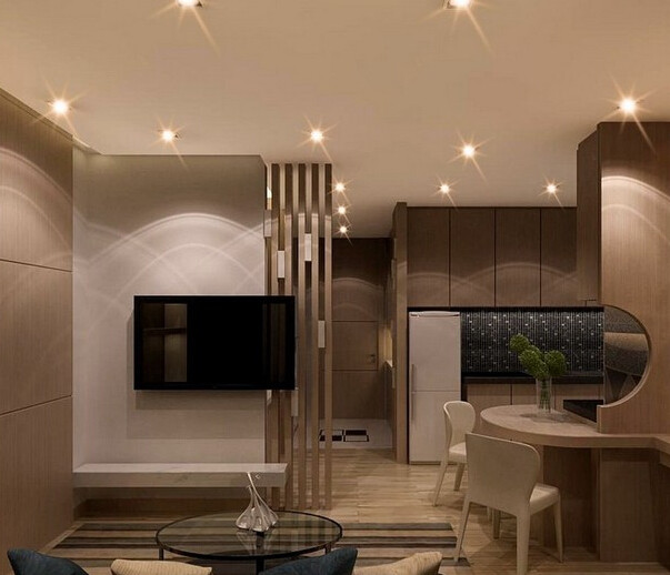 电视墙同时作为隔断,时尚感十足,让人眼前一亮。这种隔断既好看又实用,富具现代气息。
