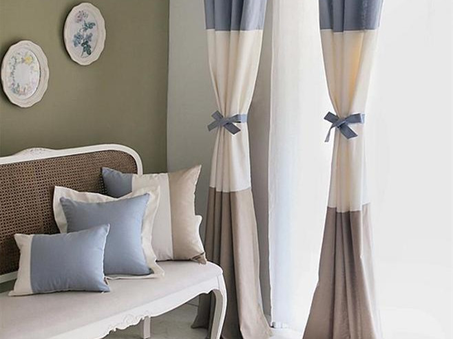 3、对于像窗帘、帷幔、壁挂等悬挂的布饰,其面积的大小、纵横尺寸、色彩、图案、款式等,要与居室的空间、立面尺度相匹配,在视觉上也要取得平衡感。如较大的窗户,应以宽出窗洞、长度接近地面或落地的窗帘来装饰;小空间内,要配以图案细小的布料,只有大空间才能选择大型图案的布饰,这样才不会有失平衡。