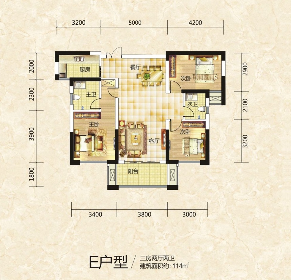 E:项目户型:三房两厅两卫