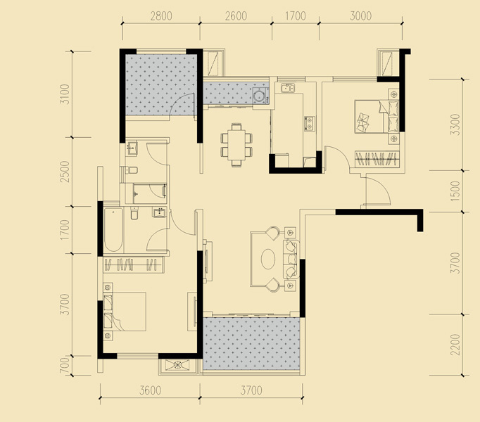 二居欧式100-120㎡