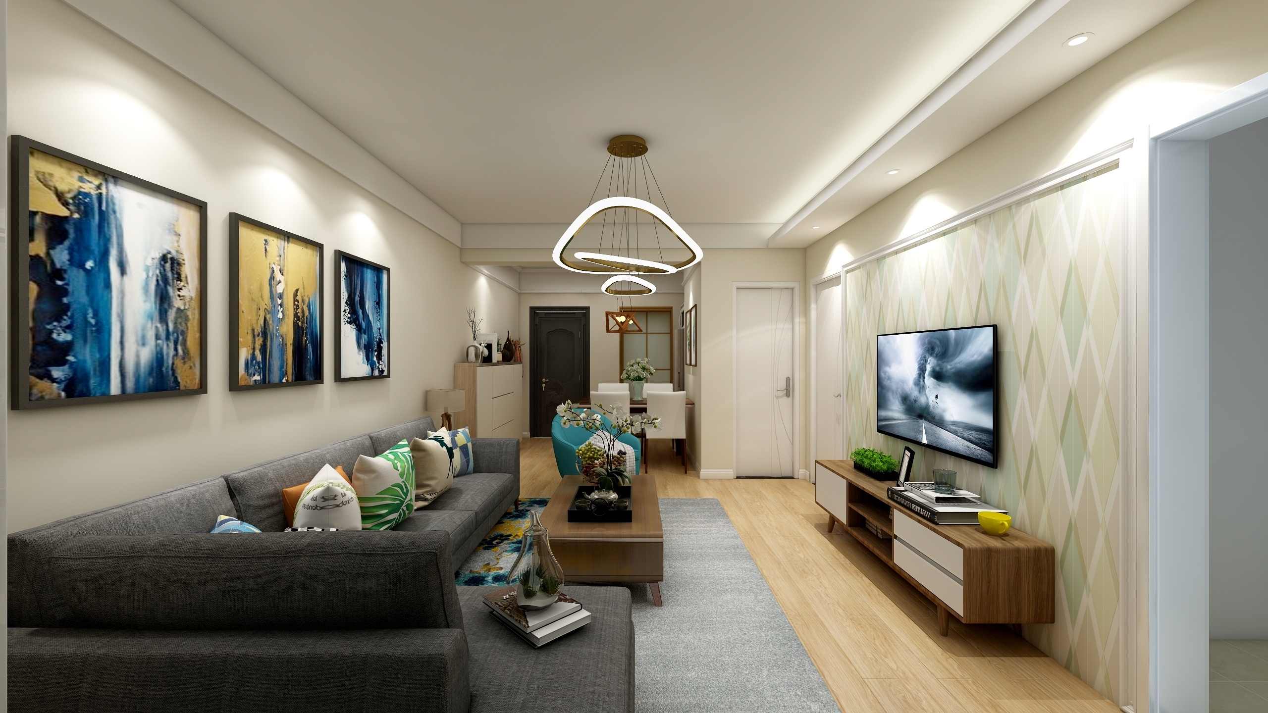 A:本次设计采用:通过前期对实际情况和客户的沟通,在原始的基础上从地面.天花以及立面的造型突出设计的主题性,上图效果是偏向于北欧风格,简单而不失独特韵味,简单的地面和天花,目的是突出客厅电视背景,结合天花走边,个性化的背景和线条以及筒灯灯带的渲染使整个电视背景在公共区域,亲戚朋友的到来也能成为亮点和看点,搭配后期的软装像沙发茶几,装饰画和窗帘等等在整个空间通过一个点形成多个连接点,将所有的硬装软装自然和谐的融为一体。