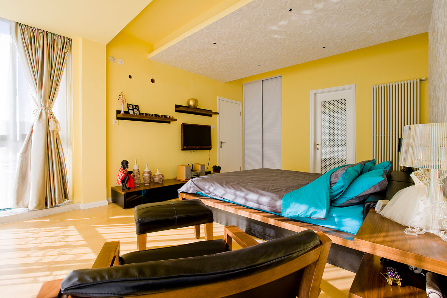 本套案例,设计师以简洁的表现形式满足业主对空间感性、理性的需求。选择的材质都是追求空间的通透,而家具样式,地面、墙面的设计,及软装配饰的选择,都以造型简洁,质地纯洁、功能性强为主。夫妻两的工作都相对比较繁忙且压力比较大,为此他们需要一个更为简单的环境给自己的身心一个放松的空间。这套现代简约风格设计师,以宁缺勿滥为精髓,合理的简化居室,从简单舒适中体现生活的精致。