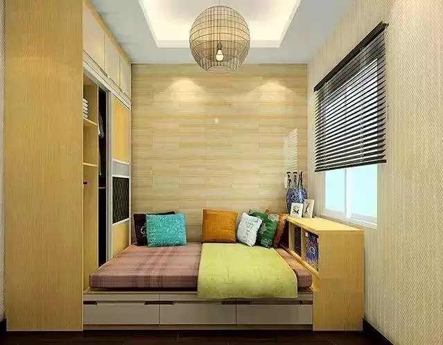 倘若你的卧室空间够宽敞,那我们可以在飘窗或窗户边做个榻榻米,这里可以作为阅读区或者娱乐休闲区使用。如果你想让这两个空间分隔开,我们可以用窗帘、珠帘、储物柜等来进行分隔。如果你想增加沙发,建议要选择精致小巧一些的沙发,这样更不会占据太多空间位置。