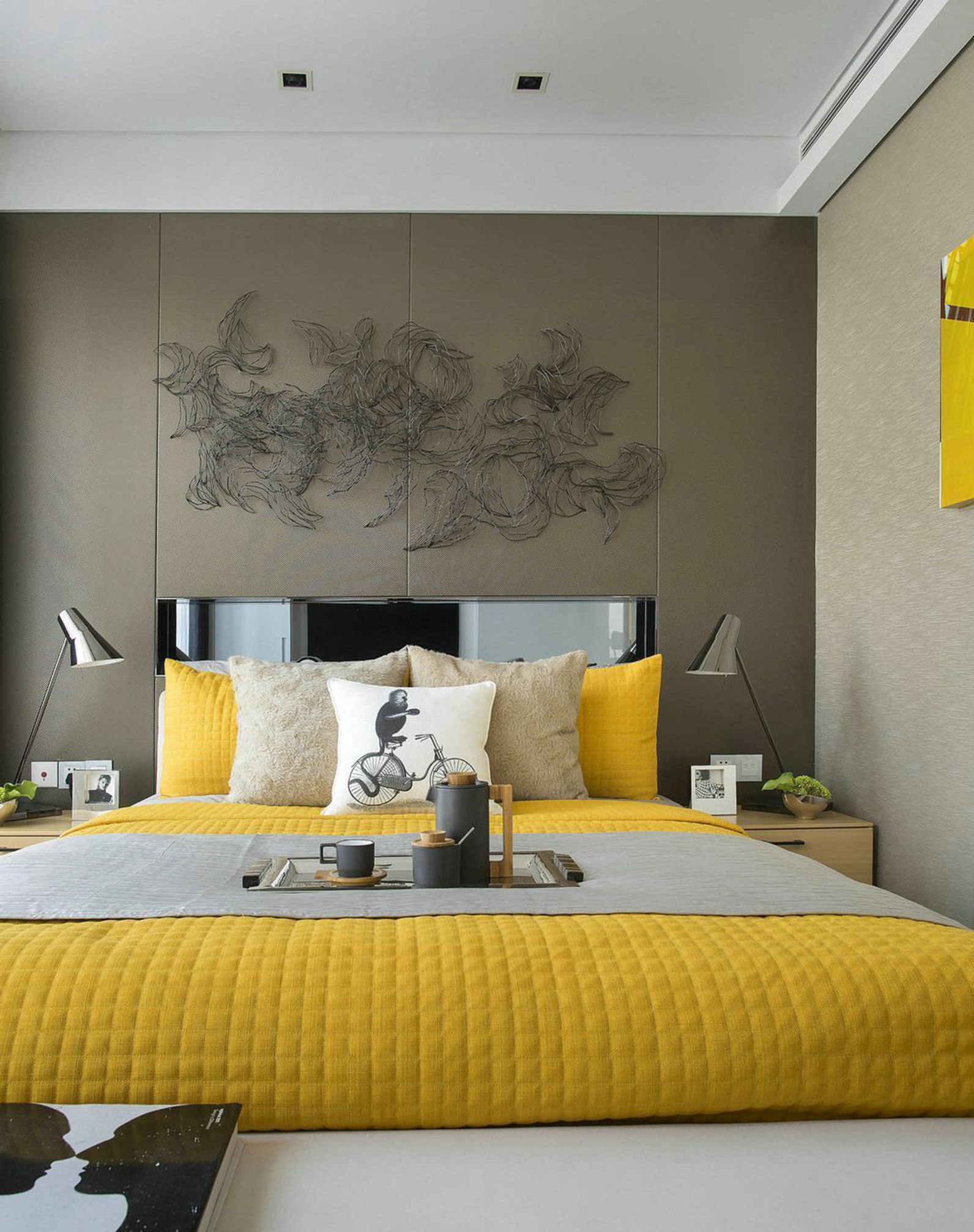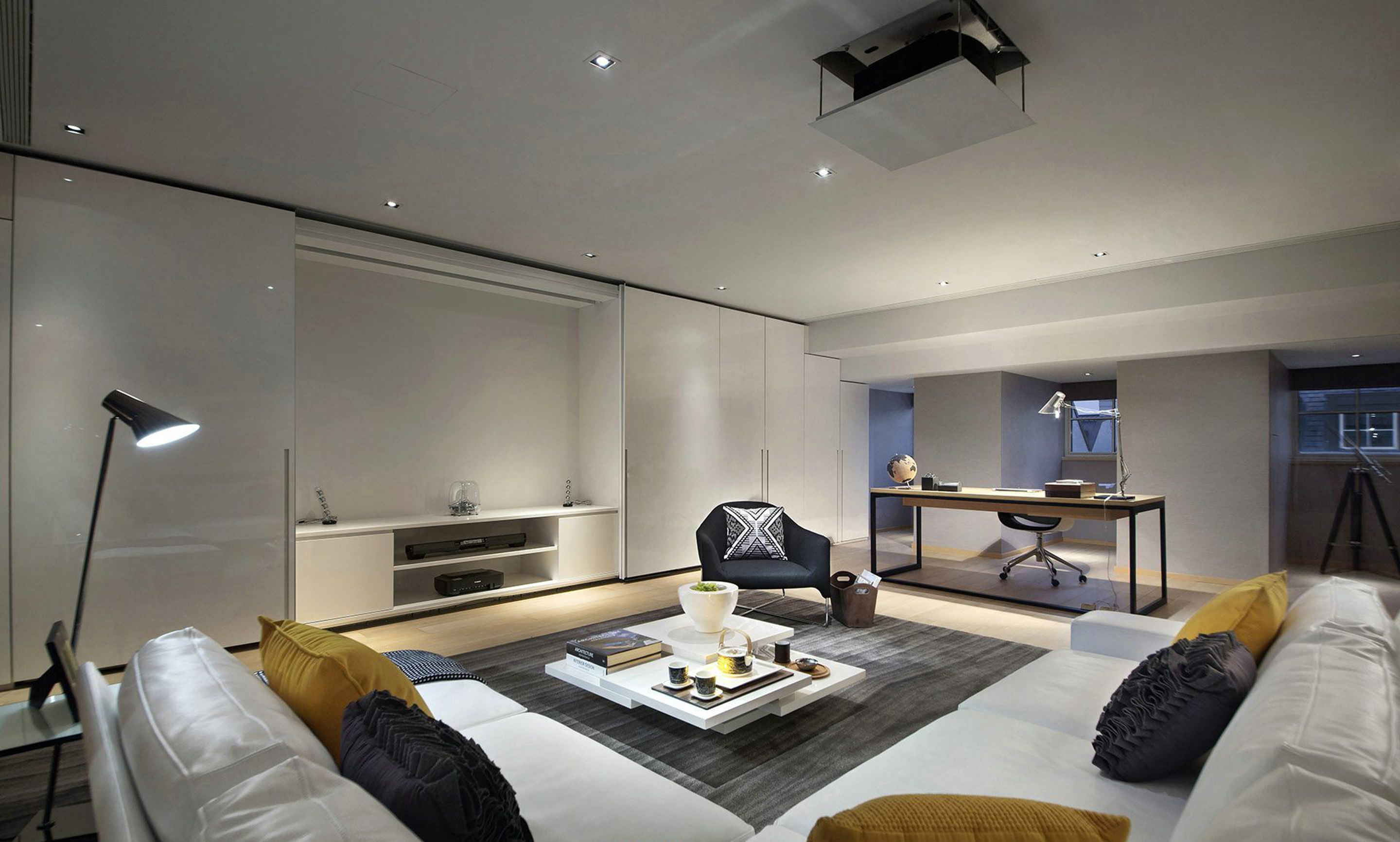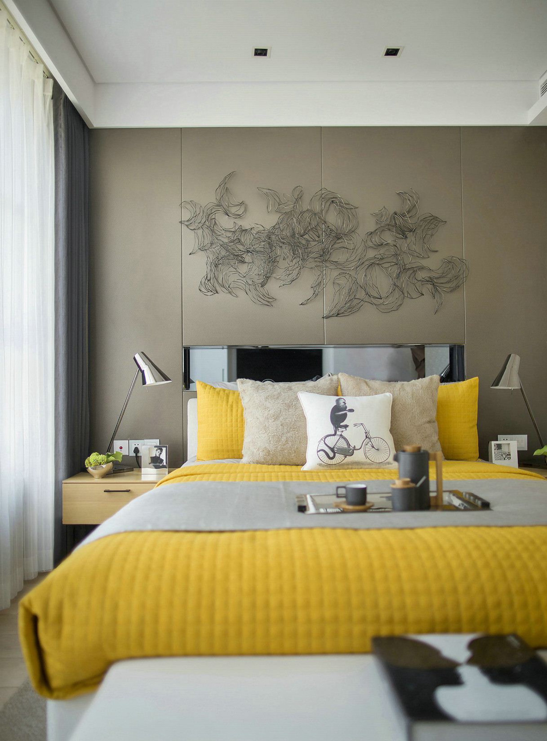 白色沙发搭配黄色、深灰色抱枕,为空间赋予的明亮轻快的氛围,