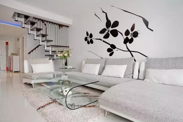 ▲客厅背景墙使用墙贴装饰,想换就换,也不贵。