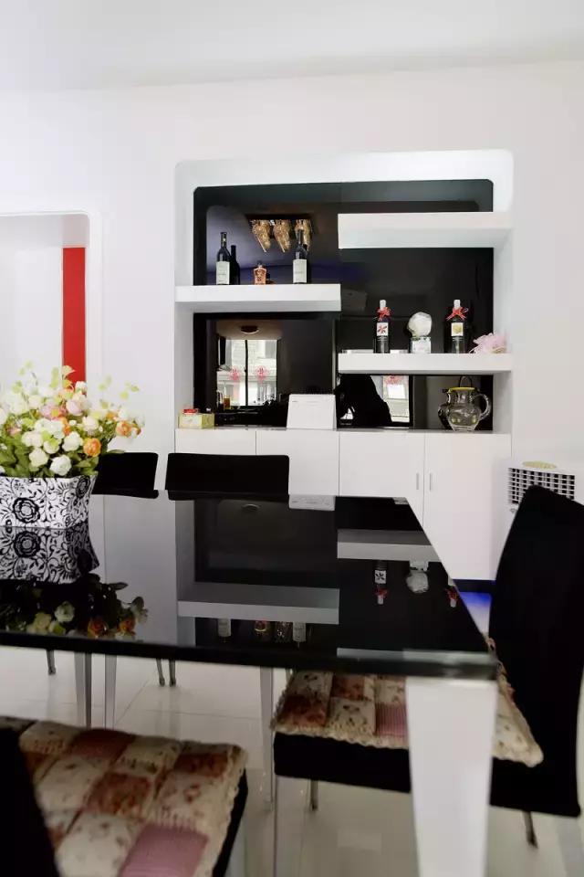 ▲餐厅设计了一个入墙式的装饰柜,节省空间之余,又增加了储物空间。