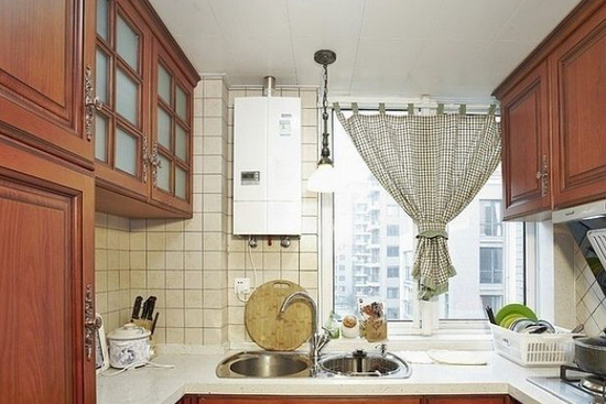 厨房最大的特点在于旧与新的结合,里面的设施是非常先进方便的,但窗帘的颜色,具有着丝乡村气息,使厨房别具特色,让旧与新的结合显得特别巧妙。白色与褐色的结合使厨房显的格外清新干净,简单的摆设使厨房的整洁度明显上升。