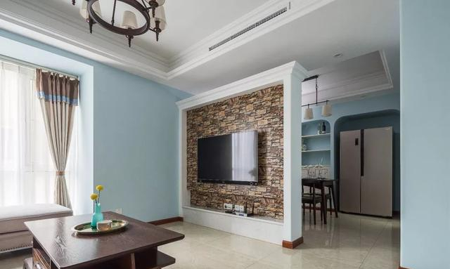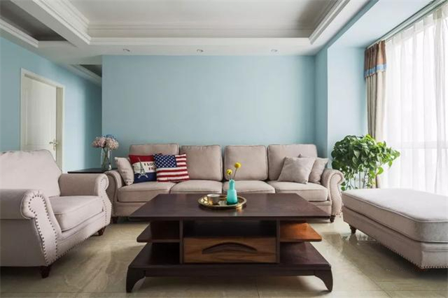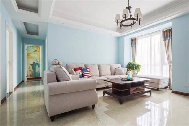 这是一套111平米的房子,房子面积相对宽松舒适,以淡蓝色的墙面基调,令人感受着轻松惬意的气息;搭配上舒适精致的美式家居质感,营造出一个华丽优雅的气质。