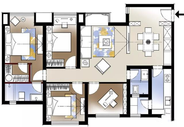 二、111平方米房子设计——糖果色111㎡三居室,治愈系温暖家装