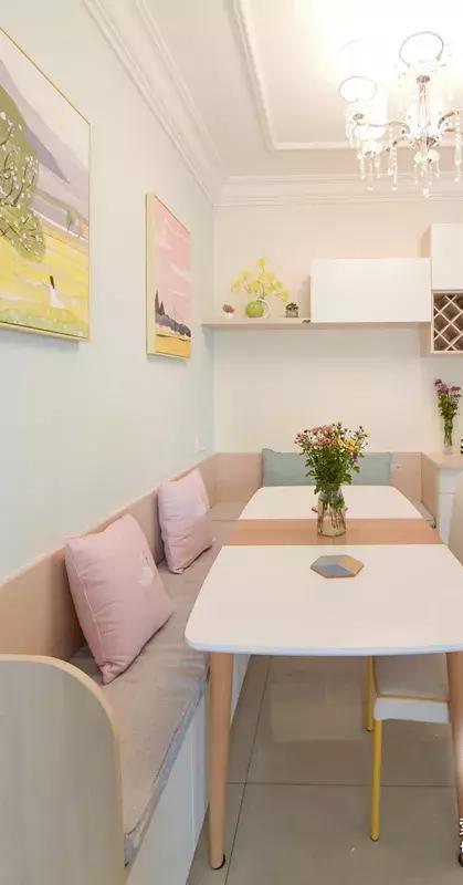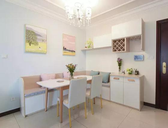 小户型卡座不仅能增加很多座位,还能增加收纳空间,当然不追求收纳的人也可以选择沙发凳和长椅,都是空间利用的绝佳办法。