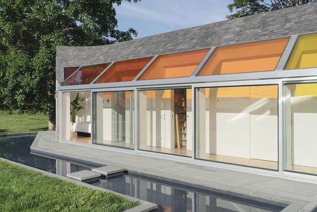 因为房子的后部是玻璃覆盖的,所以设计师增加了半透明的彩色天窗,使阳光可以穿透并在各处投射出色彩丰富,变化多端的阴影。光线也从反射池中反射出来,并通过立面反射回来。根据爱德华兹·安克(Edwards Anker)的说法,卧室走廊上排列着五颜六色的天窗是基于歌德的色彩理论,后来被19世纪画家JM威廉·特纳(JM William Turner)用在描绘水上阳光的作品中。
