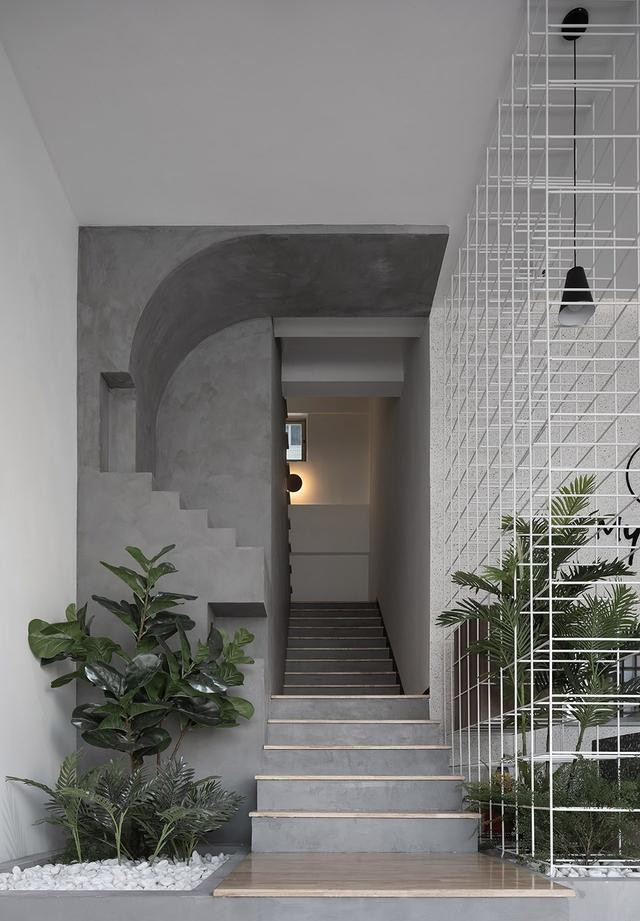在钢筋混凝土的森林里,被冰冷的金属环绕着,灰色调带着一种生人勿进的距离感,而肆意生长的植物,带着顽强而蓬勃的生命力,给空间带了温暖和活力。
