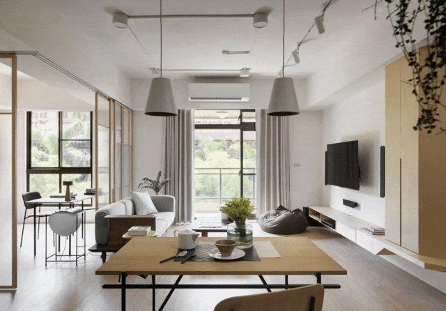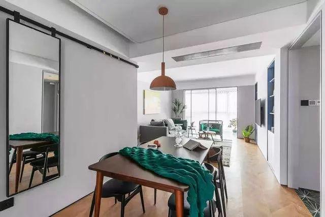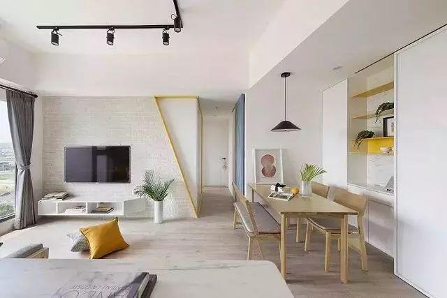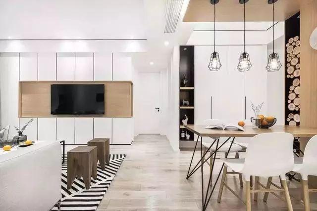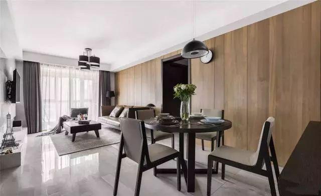 ▲若是想要提升设计感,可以考虑用两种不同的材质来做出拼接的视觉效果,如这个案例中,客厅墙面使用的是木质材料,与餐厅的墙面质感完全不同,很好的区分了两个空间。