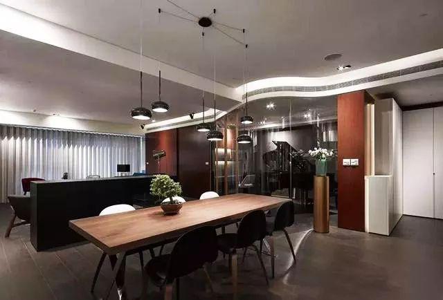 ▲对于层高不够的户型,若是做吊顶易在视觉上压迫空间,此时可以在吊灯上做文章,以此达到视觉上风格空间,此方法层高较高的户型同样适用。