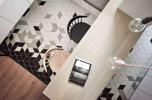 当然也可以使用同种材质,不同花色,不同图案的材质来组合,从细微处调整来凸显出两个空间的个性,增强空间的层次感。