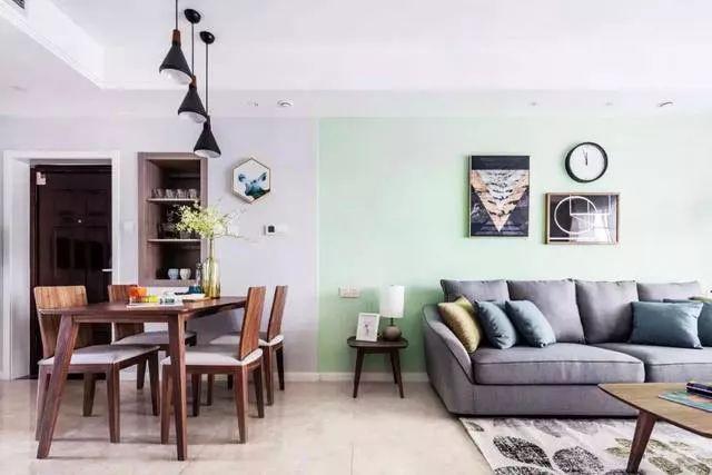 ▲若是不嫌麻烦,也可以在墙面上做一些简单的造型,比如在客厅墙面做石膏线,打柜子等,而餐厅的墙面则可以设计的相对简单大方一点,一繁一简两相宜。