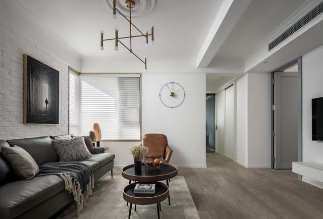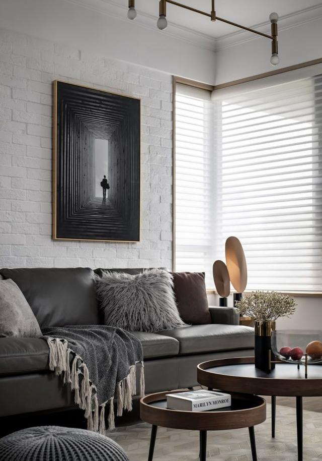 ▲ 通透、简洁的客厅,没有做过多的复杂设计,而是将小巧思集中在软装方面。宽大的灰色皮质沙发质感满满,同色系的抱枕点缀其上,丰富了空间层次感,让人不由得想深陷其中。