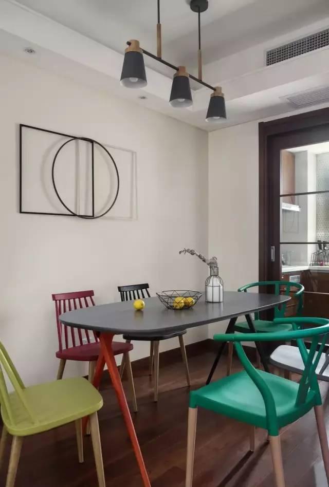 餐厅采用多色多造型的餐椅,增加了餐厅的趣闻性。