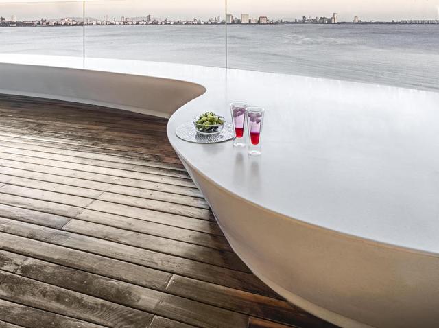 当然,如果没有阳台,那么拥有如此美景的豪华公寓将是不完整的,而这是通过结合出售的玻璃墙而不是栏杆来充分利用视野。此外,在露台上重复使用从外部弯曲的美感,使长椅沿其长度延伸,并在一端形成更宽的座椅和桌子空间。不管业主是独行情侣欣赏风景还是娱乐人群,宽敞的空间和美景都是无与伦比的。
