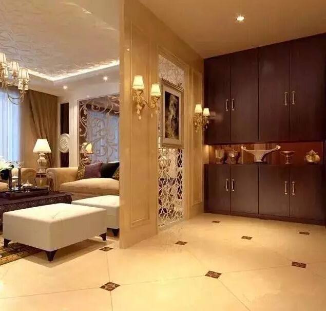 隔断主体的镂空花纹,让客厅内部若隐若现,远远地就点缀出客厅的高雅格调,这样的半开放式设计,既保证了客厅的通透性,又能兼顾其独立性。