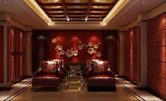 摩登感十足的影音室设计,潮流个性,依旧延续了红木风格,虽取材不同,但依旧保持整体风格。皮质的条文座椅,木质的背景雕刻灵动的花朵,一阵清香拂来。