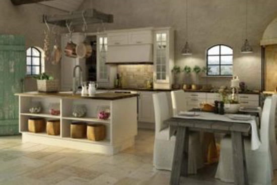 新古典风格厨房装修效果图:感受田园的味道,感受自然的味道,休闲下厨。就像回到了古典时代一般,那样的淳朴、真挚。