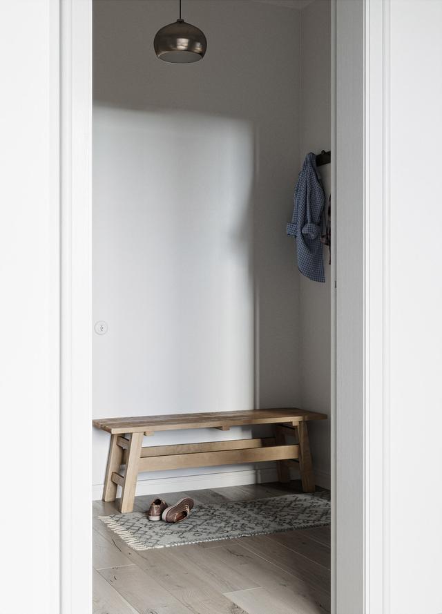 木凳,迷你地毯和一套挂钩可制作出迷人的外套和鞋角。