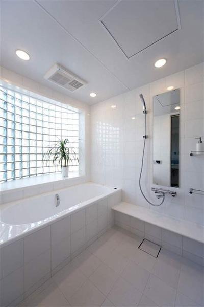 浴室的设计很新颖独特,浴缸旁边的墙壁用玻璃方砖替代,充满浪漫气息。