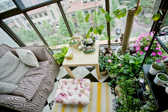 长沙装修公司:阳台总是被改造成洗衣房,虽然够实用,难免缺乏情调,家有两个阳台的业主不妨试试把一个阳台改造成小花园,春天繁花盛开,美景悦人心!