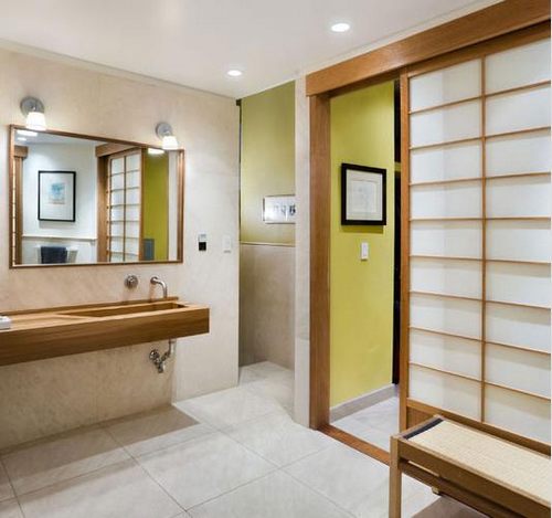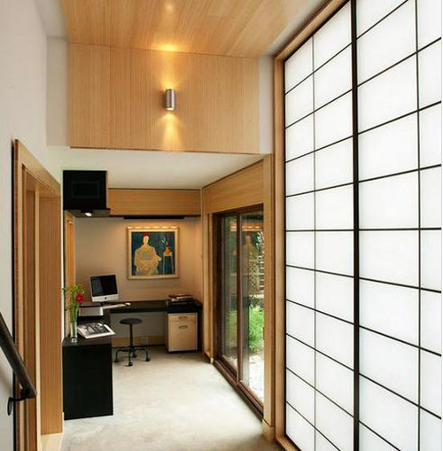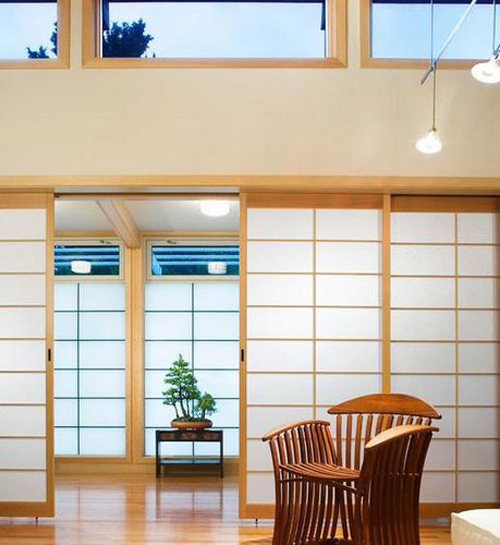 榻榻米在日式家居中很常见,因此,与之配套的推拉门也很不能避免。日式推拉门多木质材料,搭配纸质,别样的通透感符合日式自然风,与室内搭配也相得益彰。升降式设计,更是别出心裁。